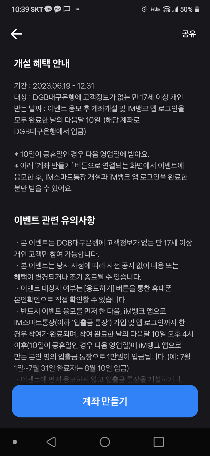 지급일 : 조건을 모두 완료한 날의 다음달 10일 (해달 계좌로 입금)