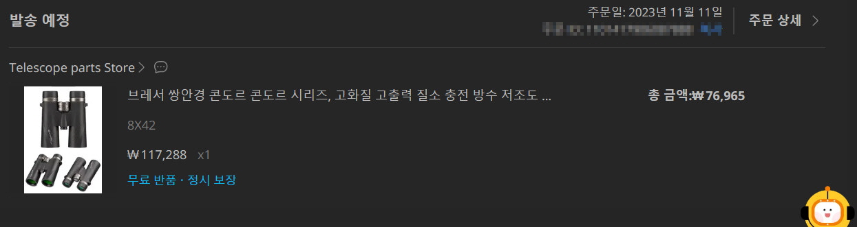 10만원대 저가 쌍안경으로 브레서 콘도르 8x42 (Bresser Condor 8x42)를 눈여겨 보다가 오늘 구매 했음.