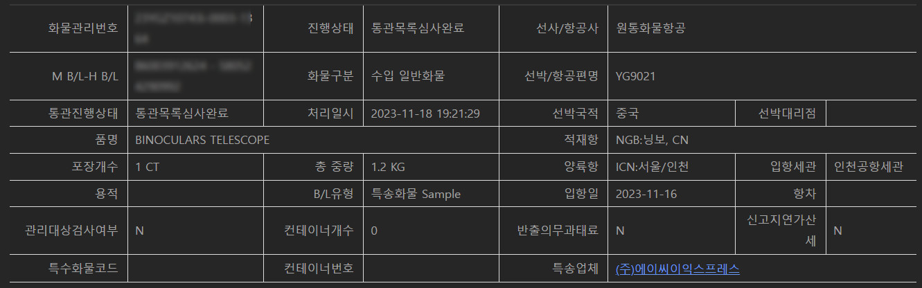 지난 11일(광군제) 오후에 주문했던 쌍안경이 오늘(20일) 도착했다.