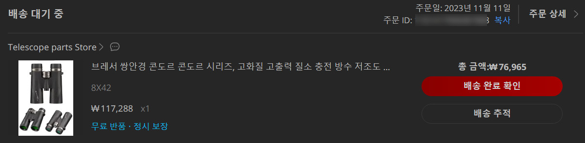 [2023.11.11] 알리익스프레스 광군제(광군절) : 브레서 콘도르 8x42 (Bresser Condor 8x42) 쌍안경 구입 (#토스페이)