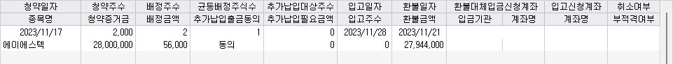 배정주식 수 : 2주 (균등1 비례1)