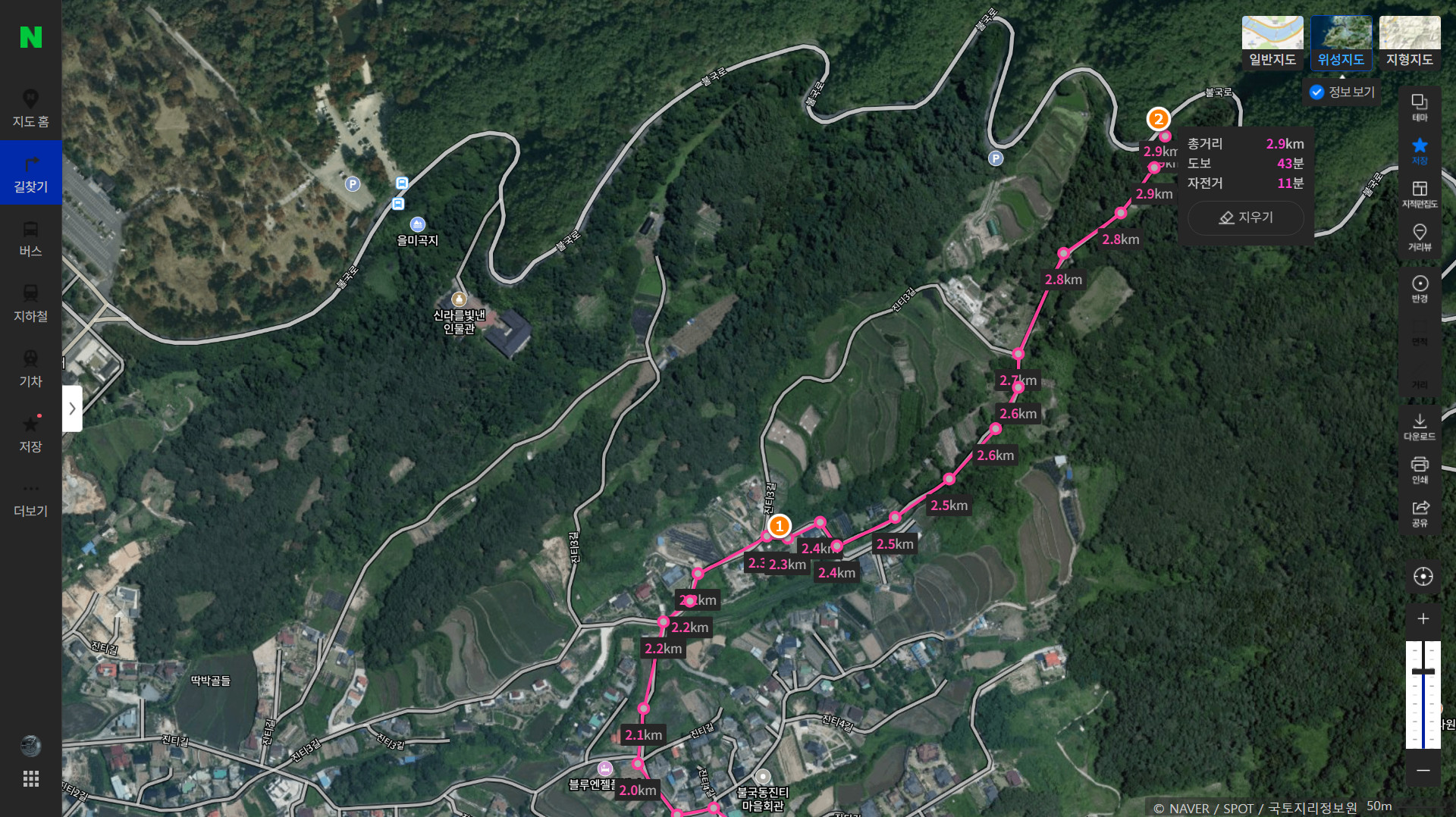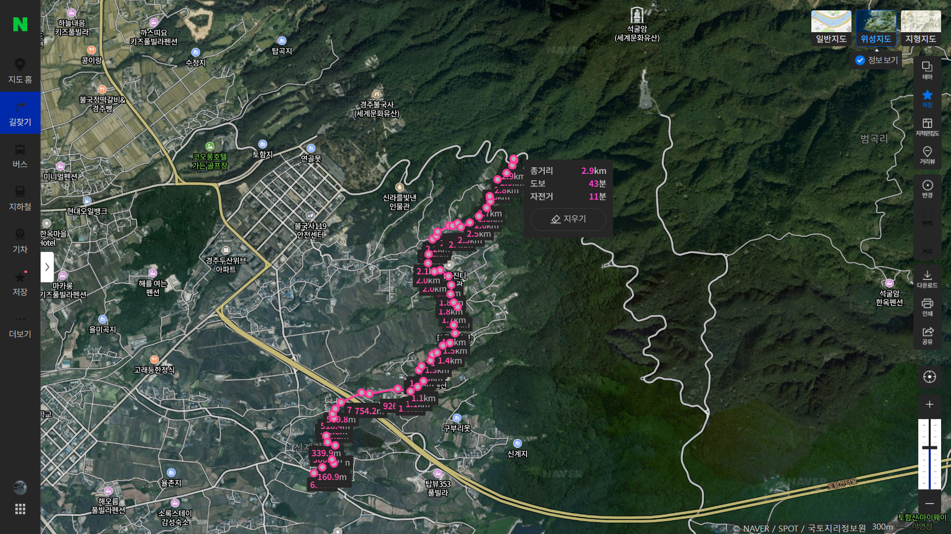 카카오맵에서는 마지막 부분 길이 안나오던데 네이버지도에는 나오더라.