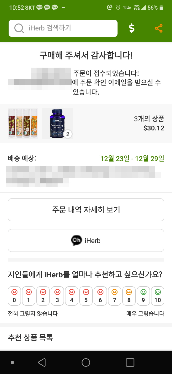 아이허브 결제금액 : 30.12달러