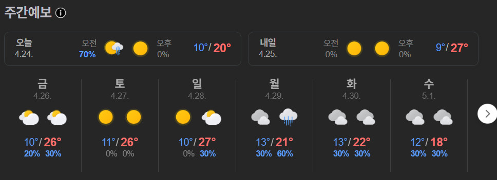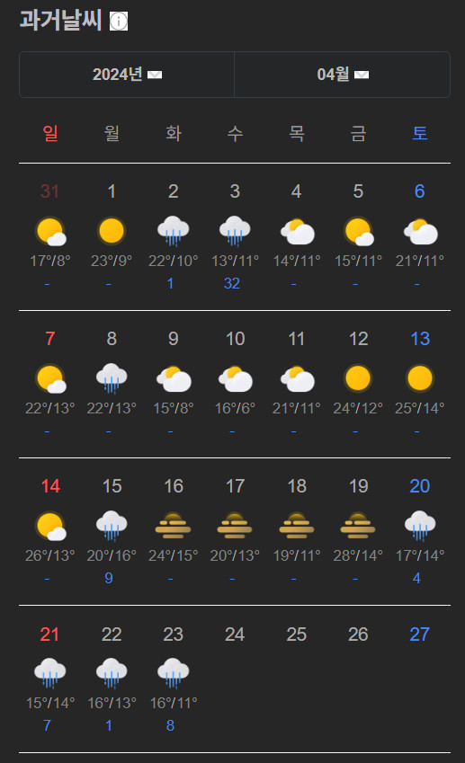 2024.04.24 5일간 비가 오고, 그쳤음. 맑음.