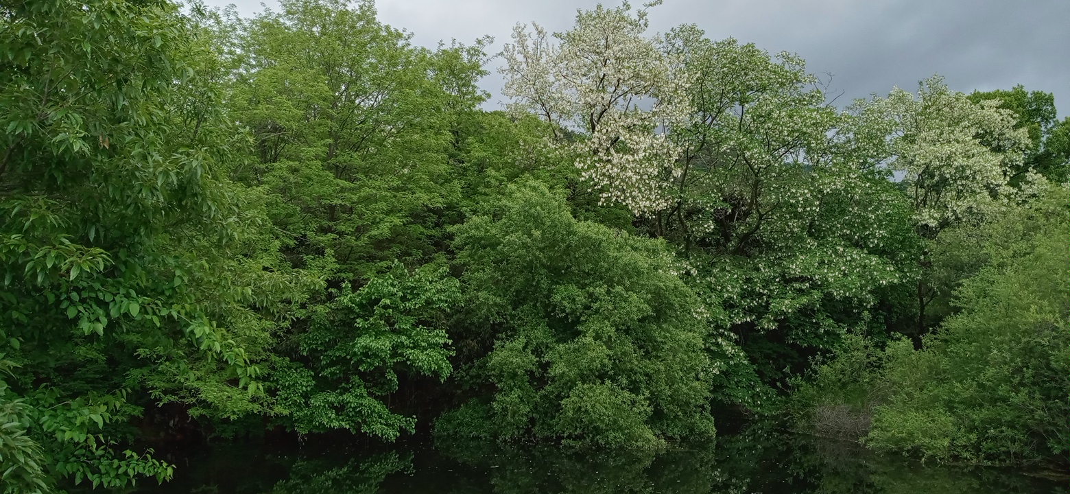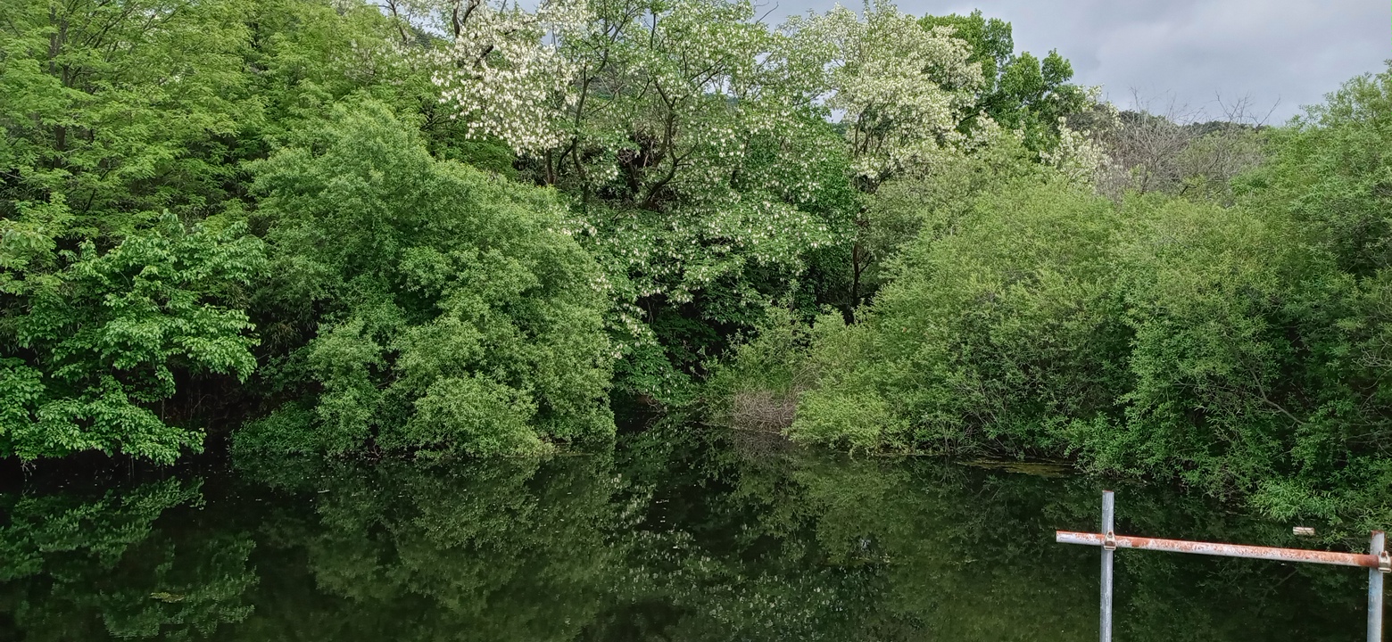 근래에 비가 많이 와서 그런지 못에 물이 많이 차있더라.