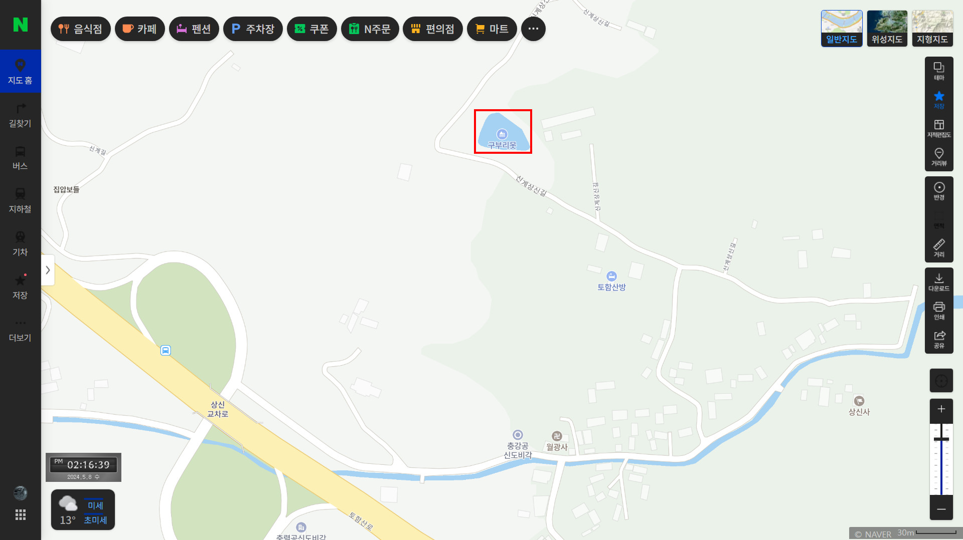 카카오맵에서는 이름이 안 나오고, 네이버지도에서는 `구부리못`이라고 나오더라.