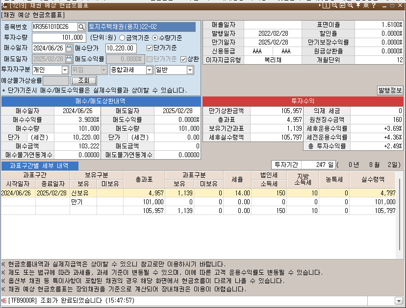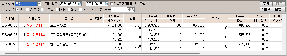 | [2024.07.01] 장내채권 매수 : 토지주택채권(용지)22-03 (1) | 2024.07.01 |
