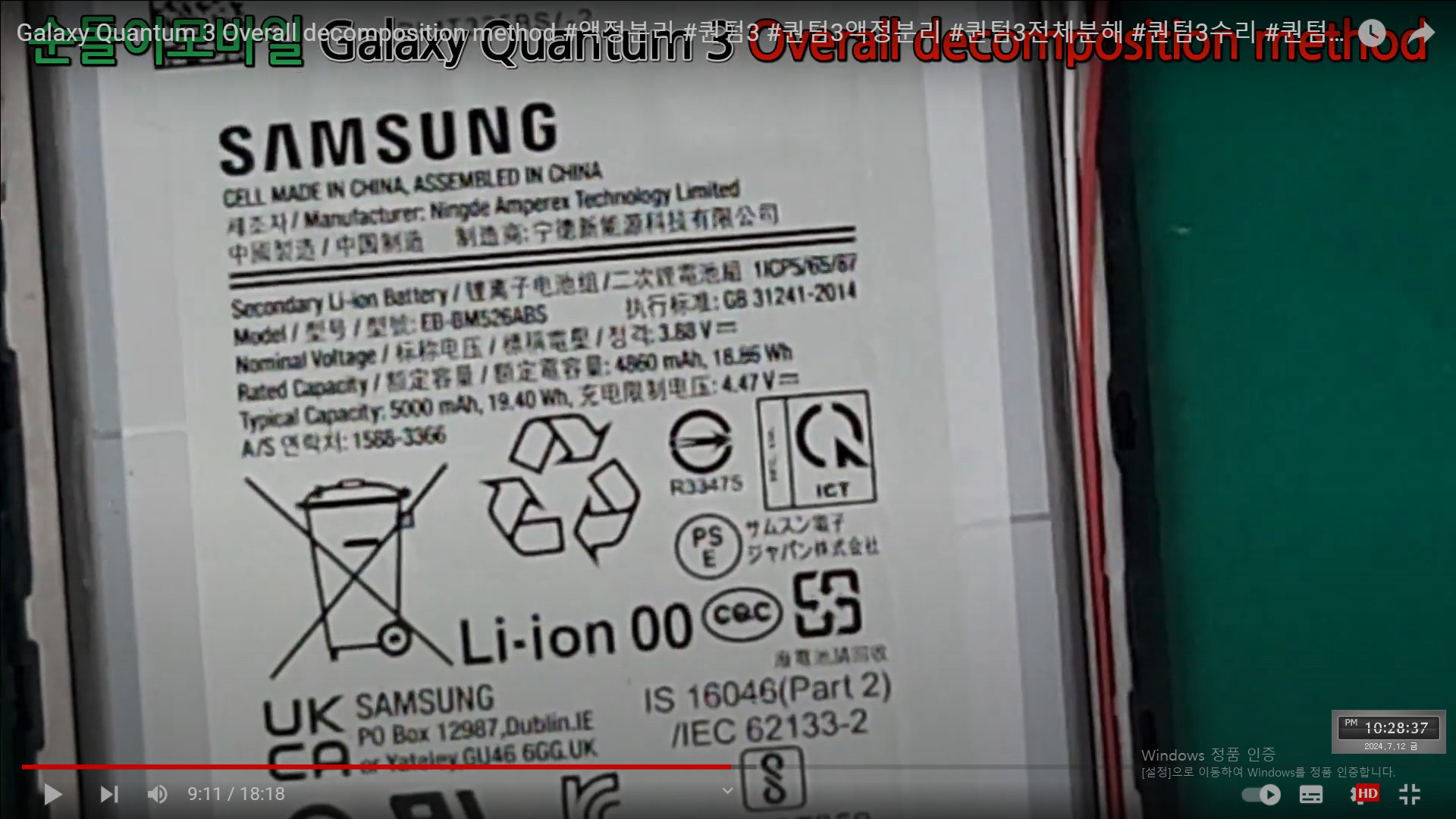 유튜브에서 분해 영상을 찾아서 보니 배터리 모델명이 나오더라.