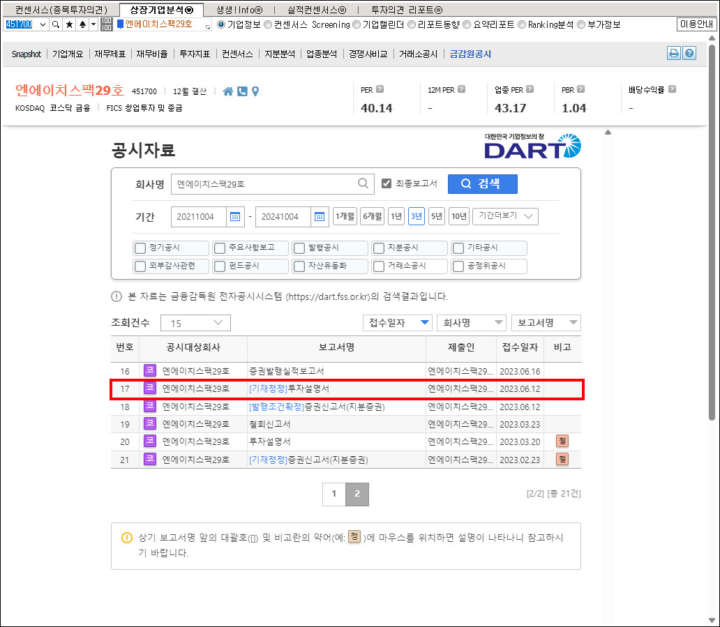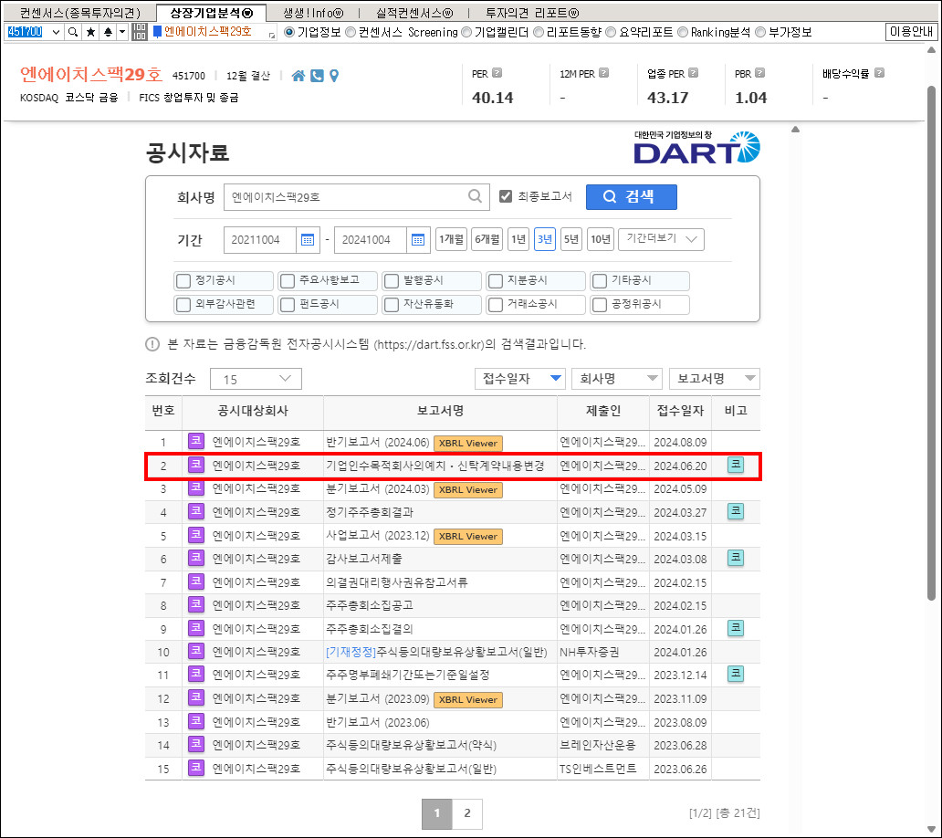 (상장한 지 오래된 스팩이면 기간을 3년으로 설정해서 검색하면 된다.)