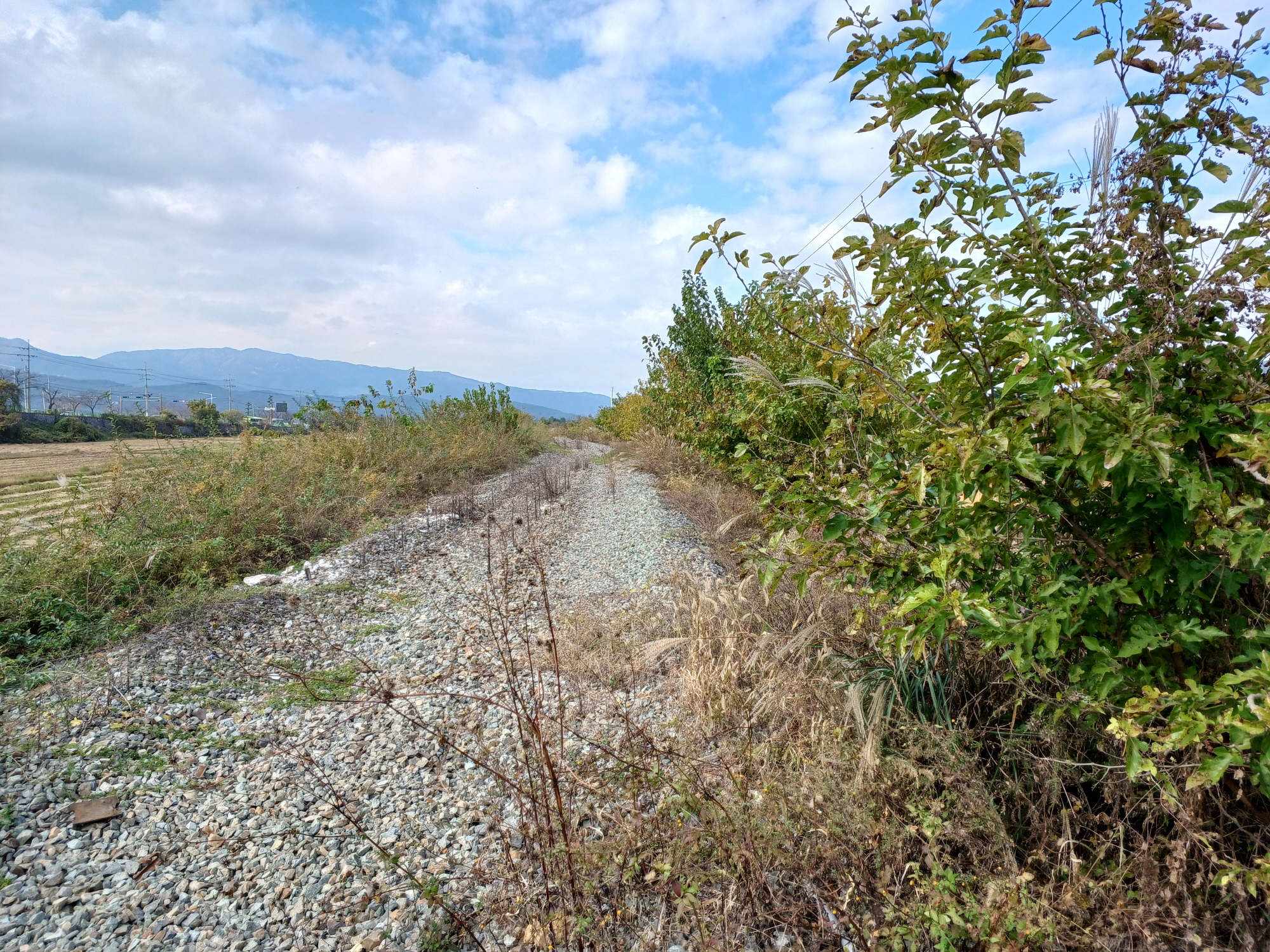 대재지를 지나 조양마을 입구로 나와서 도로옆 자전거길로 불국로터리 방향으로 이동하다가 도로 옆으로 포장된 농로가 있어서 이동을 해봤지만 길이 길지는 않더라. 길이 끊길 때쯤 과거 기찻길이 있던 자리로 스님과 개 한마리(보더콜리?)가 걸어가고 있더라.;