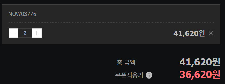 11일이 되니 빅스마일데이가 끝나서 중복쿠폰은 사라지고, 1개에 17,680원, 2개 36,620원임(무료배송)