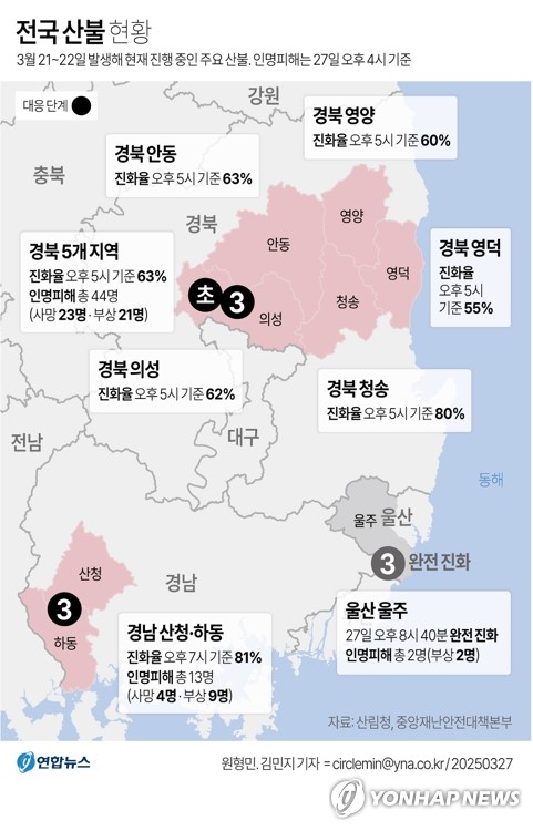 #전국 동시다발적 산불 확산 (#경남 산청산불 -하동, #경북 의성산불 -안동-청송-영양-영덕, #울산 울주산불) 🔥🔥🔥