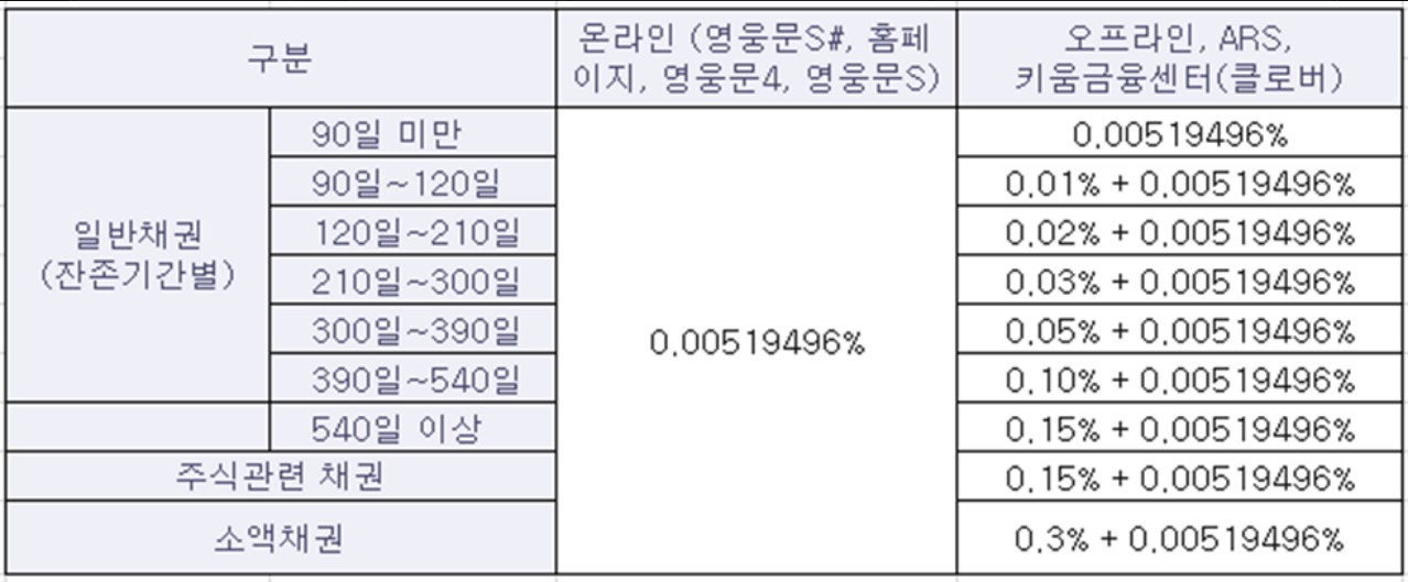 유관기관 수수료 0.00519496% 부과 : 잔존기간 무관, 소액채권 마저도.. 미친 ㄷㄷㄷ