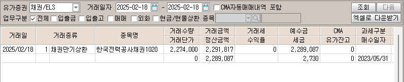 [2023.05.31] 장내채권 매수 : 한국전력1020 (세후 4.06%, 218만원)