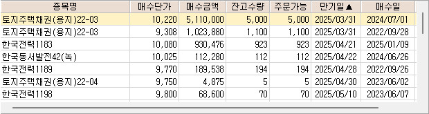 | [2025.06.02] 채권만기상환 : 한국전력1210, 토지주택채권(용지)22-05 (0) | 2025.06.02 |