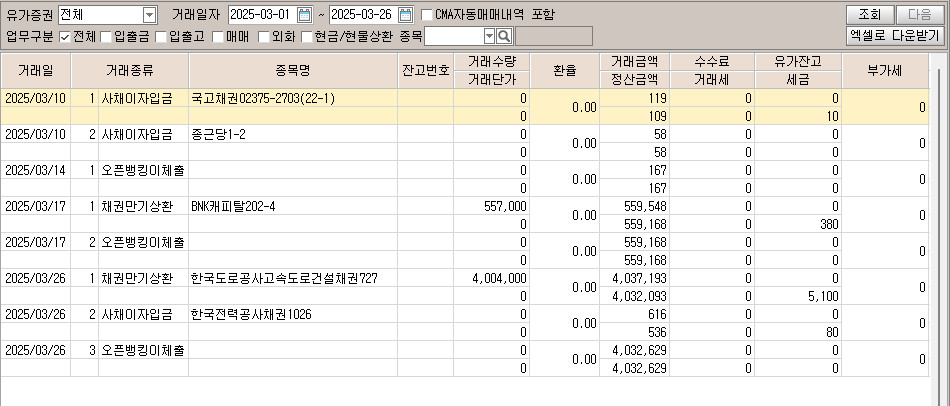 2025.03.17 BNK캐피탈202-4 채권 만기도 있었음.