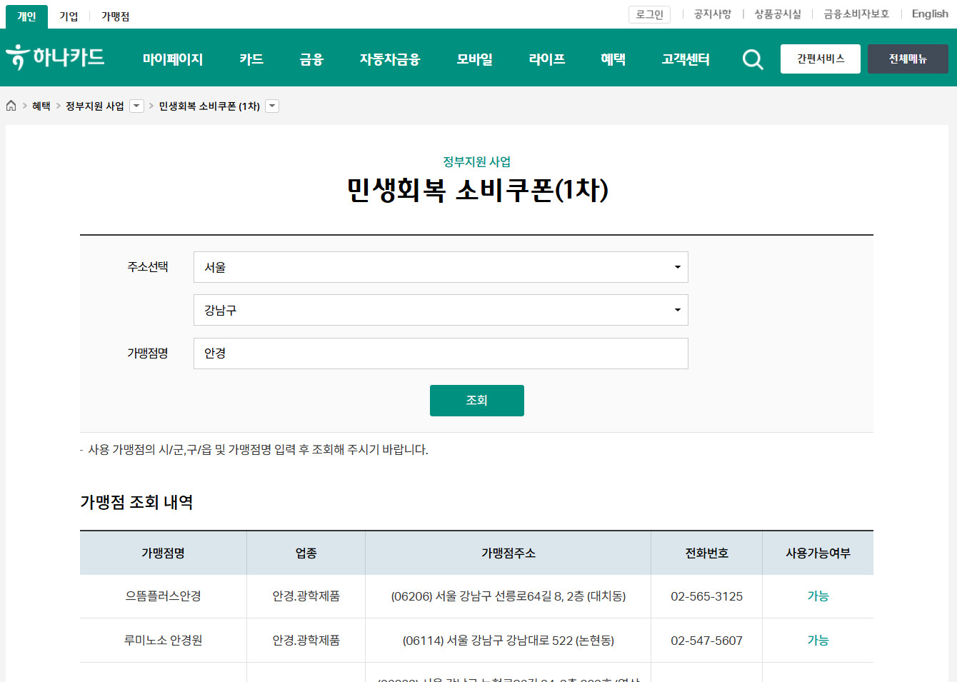 “소비쿠폰 사용처”, “지역화폐 가맹점” 등 키워드로 검색