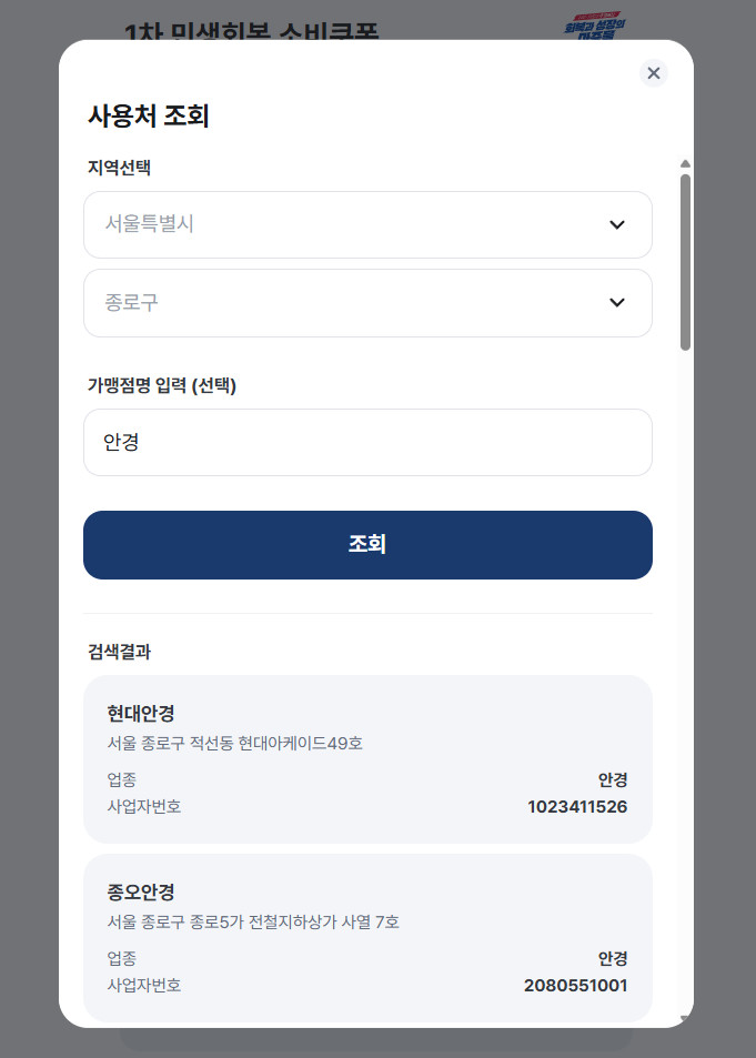 또는 “○○시 소비지원금 가맹점” (예: 서울시 소비지원금 가맹점)