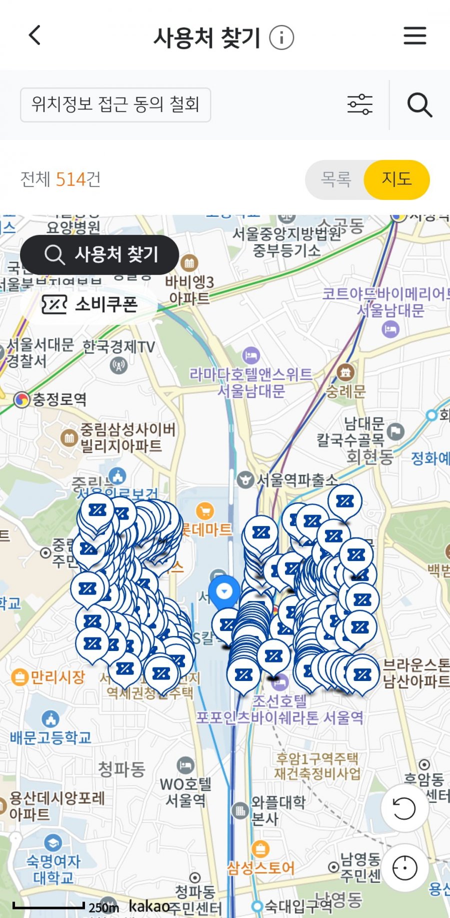 카카오맵에서는 지자체나 카드사와 제휴된 가맹점 정보를 100% 반영하지 못할 수 있으므로,