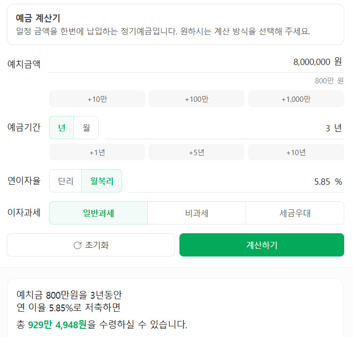 네이버 정기예금 계산기로 계산을 해보니 대충 맞는 듯..
