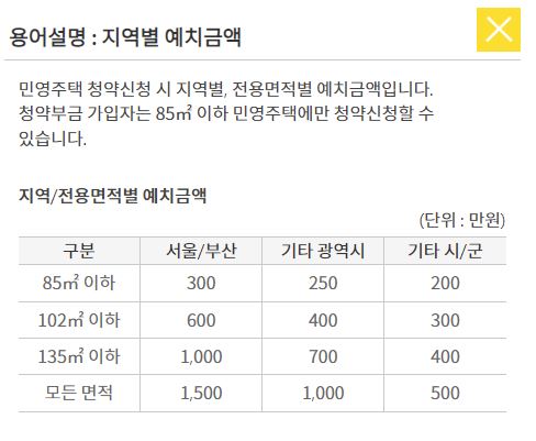 아 위의 부분은 어디까지나 공공분양에나 해당하는거구요(공공분양은 통장 점수로 커트라인이 정해집니다), 민간분양은 아래 금액만큼만 넣어놓으시면 됩니다.