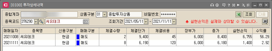 씨유테크 8주 매도. (거의 공모가 근처에서 매도함)