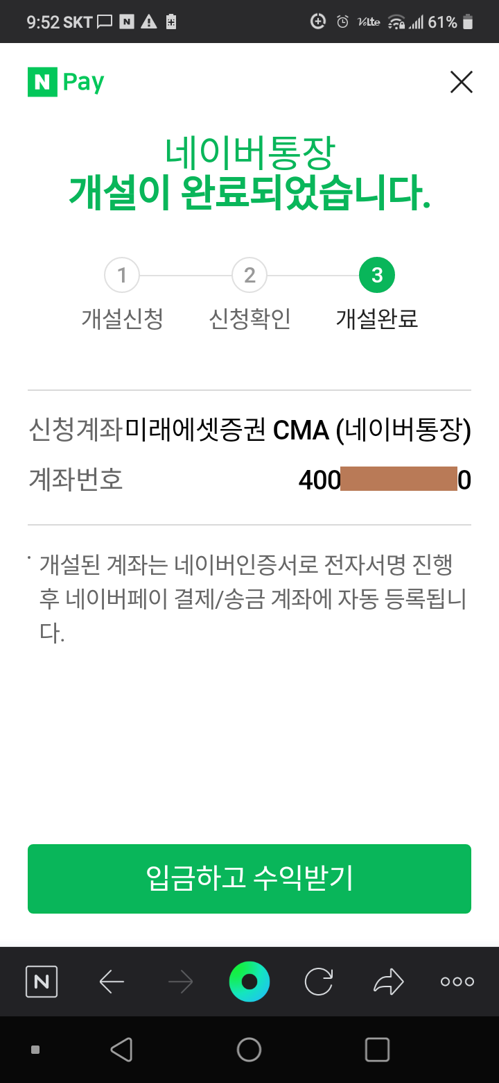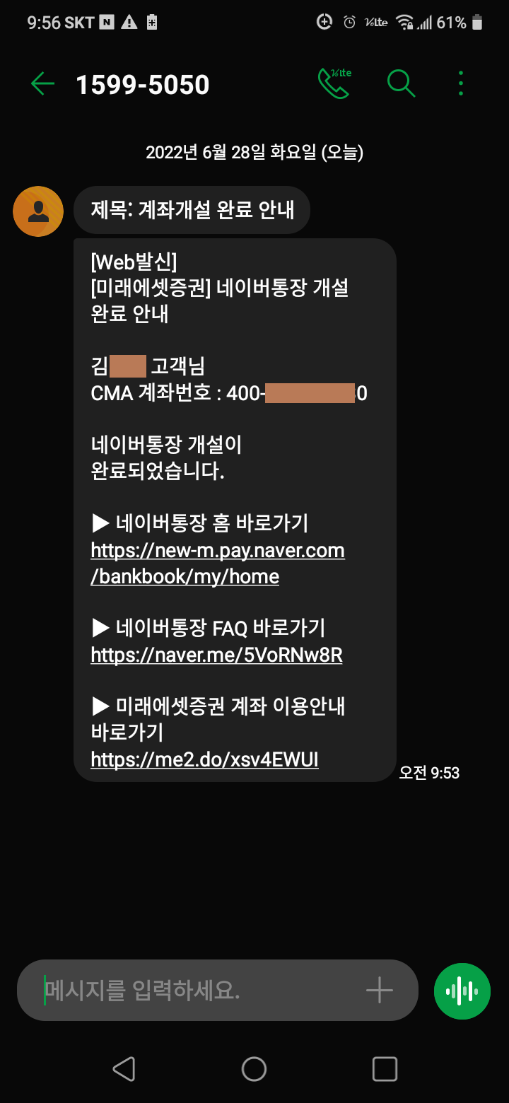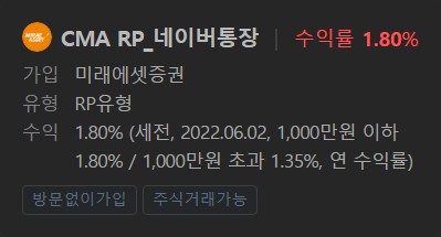 [2022.06.28] 네이버통장 (미래에셋증권 CMA) 개설