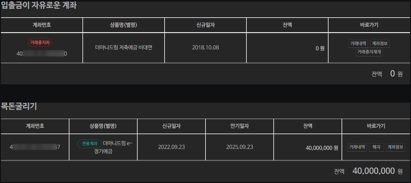 [2022.09.05] 다올저축은행, e자유해지 정기예금 부분해지 : -9,998,000원