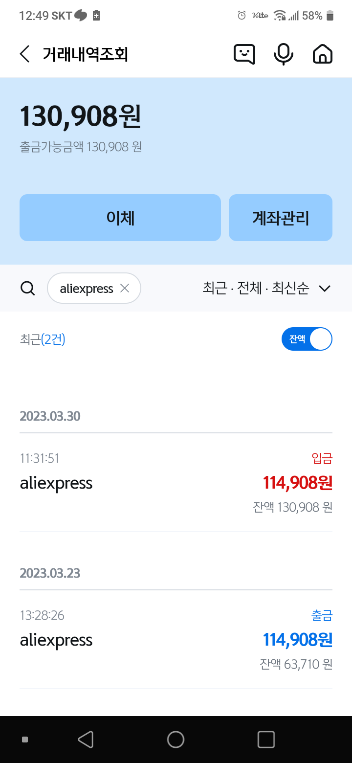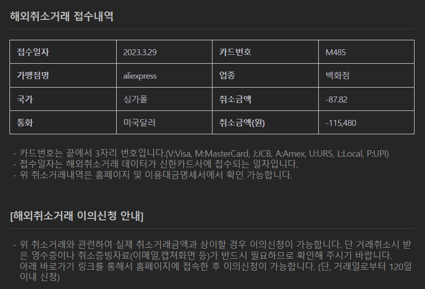 [2023.03.30] 알리익스프레스 주문취소 후 환불까지 과정 메모 (신한카드, 체크카드, 달러결제)