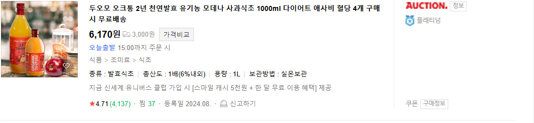 [2025.08.07] 애플사이다비니거(애사비) 구매에 대한 메모 (#천연발효 유기농 사과식초)