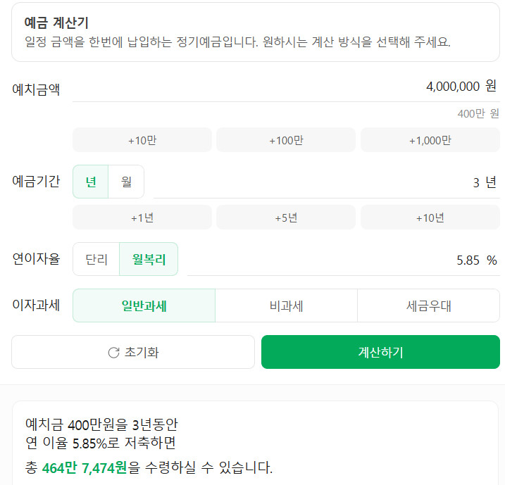 네이버 정기예금 계산기로 계산을 해보니 대충 맞는 듯..